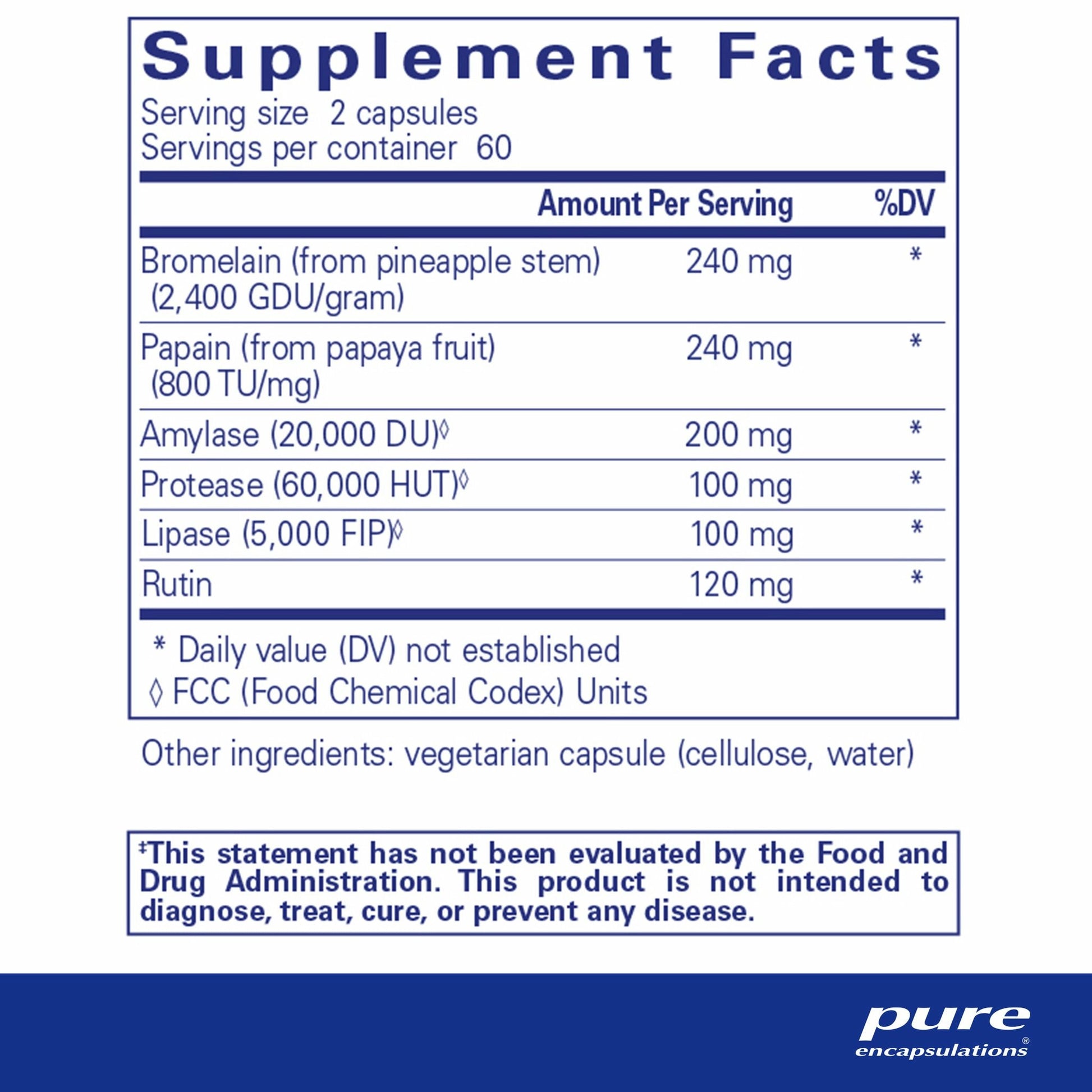 A.I. Enzymes provides a superior combination of natural vegetarian-based enzymes precisely balanced for broad-spectrum support of digestive function, or to help maintain healthy joints and muscles. This formula contains enhanced levels of protease, amylase and lipase derived from the digestion of a nutrient source by Aspergillus oryzae and Apergillus niger. Bromelain (from pineapple) and papain (from papaya), broaden the protease profile of this formula. The flavonoid rutin supports immune-mediator balance and antioxidant defenses. Taken between meals, A.I. Enzymes promotes healthy levels of kinins and fibrin, thereby helping to maintain normal muscle and joint function. Taken with meals, the plant enzymes help replace naturally occurring enzymes that are destroyed in highly processed and cooked foods. This plant enzyme blend promotes the breakdown of protein, carbohydrates and fat.