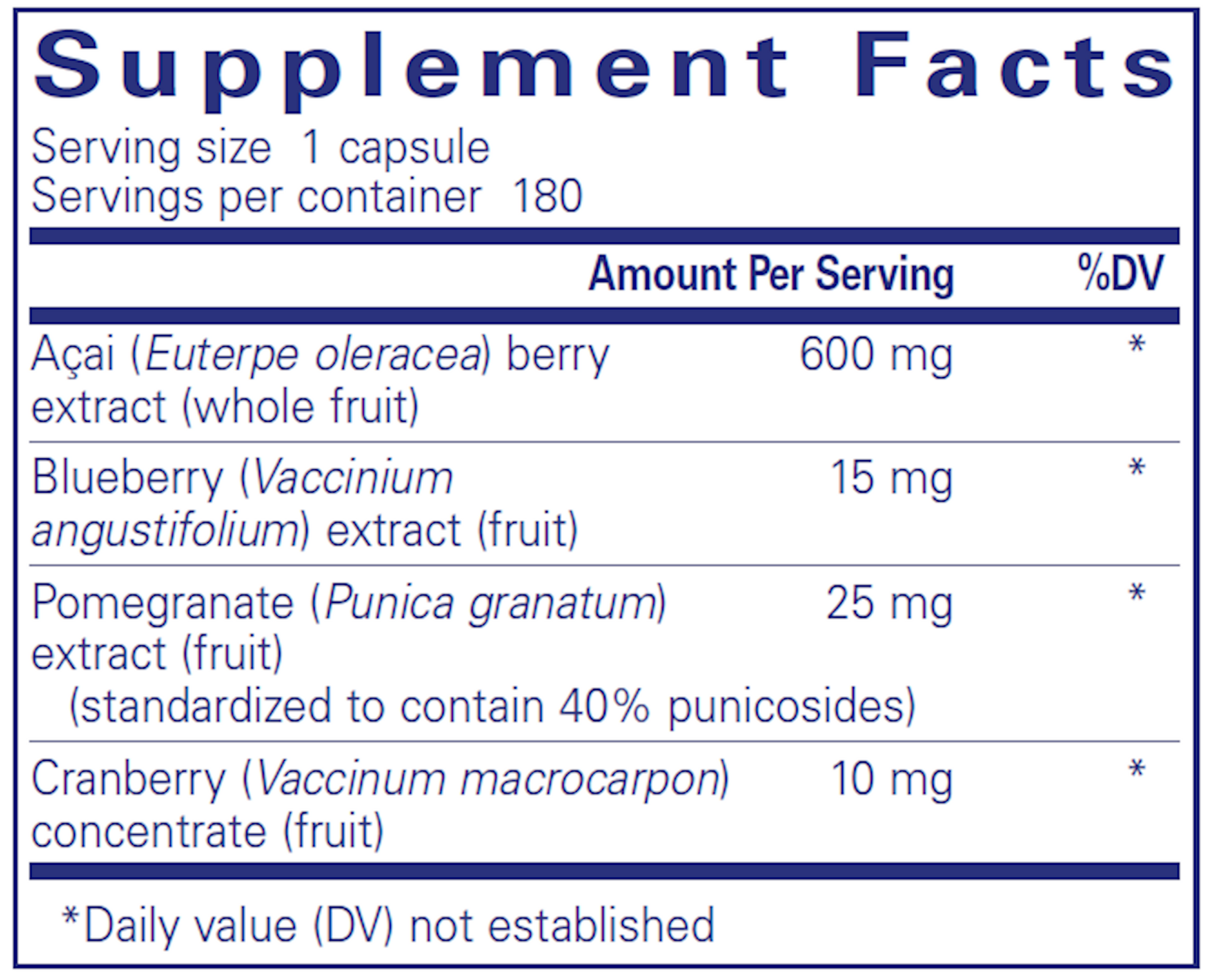 Açai berry extract (Euterpe oleracea), native to Brazil, offers an exceptional nutritional composition. In this formula, açai is combined with blueberry, pomegranate and cranberry for additional support.