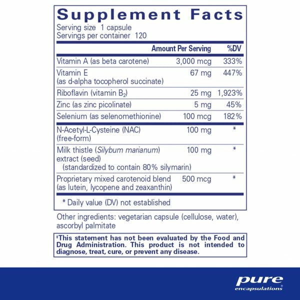 AntiOxidant Formula offers a synergistic, broad spectrum of antioxidants designed to protect against free radical damage in every cell of the body. Free radicals are atoms, ions, or molecules with one or more unpaired electrons that bind to and destroy cellular compounds. Dietary antioxidants disarm free radicals through a number of different mechanisms. Foremost, they bind to the free electrons, 'pairing up' with them, creating an innocuous cellular compound that the body can eliminate as waste. The antioxidants in this formula also support and enhance the body's natural defense mechanisms against free radicals: the enzymes superoxide dismutase, catalase, and glutathione peroxidase.