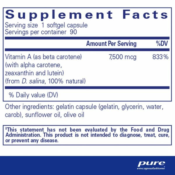 From natural D. salina; vitamin A precursor for antioxidant support