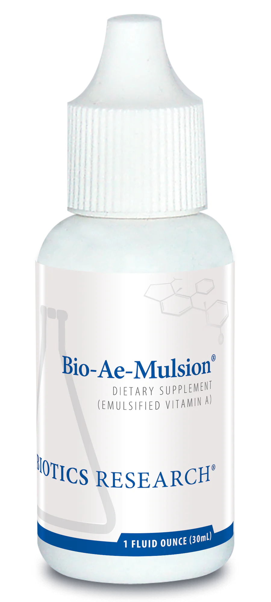 Bio-Ae-Mulsion® is a source of Vitamin A in an emulsified form, to assist with uptake and assimilation. It may be used in cases of vitamin A need. Each drop supplies 2,000 IU of vitamin A as palmitate.
