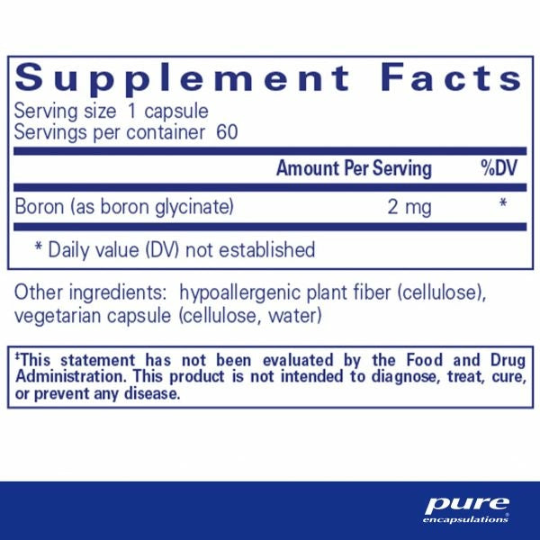 Boron supports calcium, phosphorous, and magnesium metabolism and reduces the loss of these minerals through the urine. Boron also plays a role in the synthesis of estrogen, vitamin D, and other steroidal hormones and may support healthy hormonal balance. In addition, boron strengthens the connective structure in bone matrix.