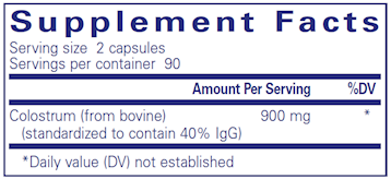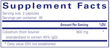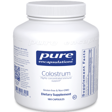 Colostrum is a highly concentrated source of immune and growth factors produced from mammary glands shortly after giving birth. Pure Encapsulations Colostrum is derived from BSE-, hormone-, pesticide- and antibiotic-free USDA certified dairy farms in the U.S. It is collected after the first 24 hours, defatted and standardized to contain 40% IgG. Colostrum contains immunoglobulins G (IgG), A (IgA), E (IgE), D (IgD) and M (IgM). Each has a specific role in immune health. IgG is naturally found in the highest concentration. Other naturally occurring immune-support compounds include lactoferrin, proline-rich polypeptide (PRP), lymphokines, interferons, interleukins, oligosaccharides, lysozymes, insulin growth factors (IGF-1 and IGF-2) and transforming growth factors (TGF-alpha and TGF-beta).