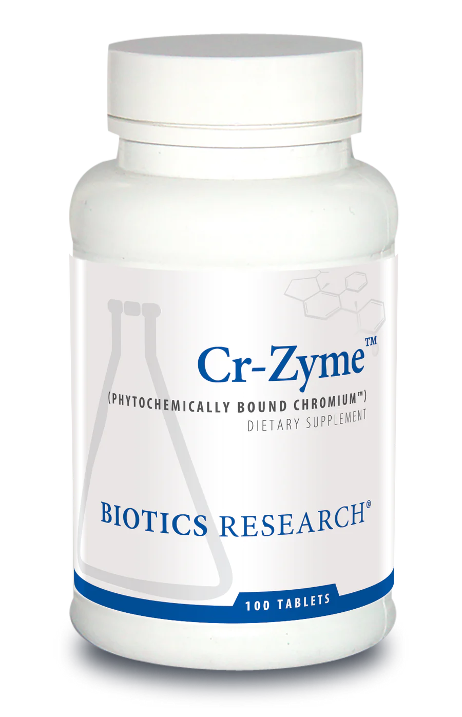 Cr-Zyme™ supplies chromium as a non-yeast, true food-form source of chromium. Chromium is an essential trace element, important in healthy carbohydrate metabolism.* It also plays a role in how insulin helps the body with proper blood sugar metabolism.* Each tablet of Cr-Zyme™ provides 200 mcg chromium.