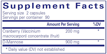 Cranberry concentrate provides urinary tract support without the unwanted sugar found in cranberry juice or juice cocktails. It enhances the acidity of urine and maintains a healthy urinary tract ecology. At Brigham and Women's Hospital in Boston, a randomized double-blind, placebo-controlled trial involving over 150 female volunteers reported positive support for a healthy urinary tract after administration of a cranberry beverage. d-Mannose, a simple sugar found in cranberries and other fruit, is included in this formula to provide enhanced support. One study suggested that dMannose may play a role in supporting healthy genitourinary function by maintaining a healthy mucosal surface.