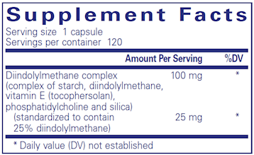 DIMPRO® 100 contains BioResponse DIM® (diindolylmethane complex). Diindolylmethane is a metabolite of indole-3-carbinol (I3C). Both are metabolites of glucosinolates found naturally in cruciferous vegetables like broccoli, kale and Brussels sprouts. Upon contact with gastric acid in the stomach, I3C is converted to a number of active compounds, predominantly diindolylmethane. Research indicates that diindolylmethane supports healthy cell cycle function and signal transduction to maintain breast, cervical and prostate cell health. In a double-blind, randomized clinical trial, BioResponse DIM® revealed potential support for maintaining the function of healthy breast cells. Another randomized placebo-controlled crossover trial found that it promoted statistically significant breast comfort. Furthermore, an additional doubleblind, randomized clinical trial with 52 women found that BioResponse DIM® supported cervical cell health. Diindolylmethane in its pure form is highly insoluble. Patented, microencapsulated BioResponse DIM® has been specially developed for enhanced solubility and absorption. This form may be more supportive than I3C in cases of low gastric acidity.