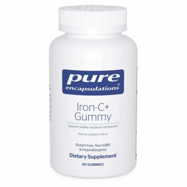 Iron-C+ Gummy offers a blend of iron, vitamin C, and B vitamins to support healthy red blood cell function. Iron is an important component of hemoglobin in red blood cells and myoglobin in muscle cells where it is required for oxygen and carbon dioxide transport. Optimal iron levels have been associated with athletic performance, muscle strength, and mitochondrial function. In addition, iron status may support cognitive function and healthy sleep. Vitamin B6 and vitamin B12 are cofactors to support healthy red blood cell function. Vitamin C is included to enhance the absorption of iron.