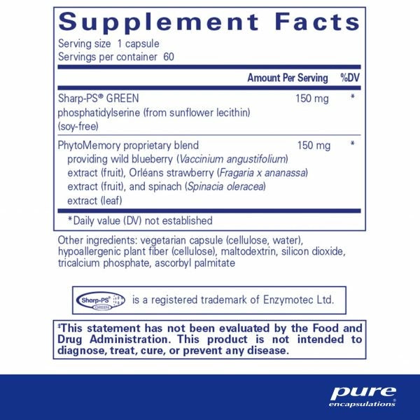 PS Plus provides Sharp-PS® GREEN, a soy-freep hosphatidylserine, derived from sunflower lecithin. Phosphatidylserine (PS) is the most abundant phospholipid in the brain, where it supports neuron membrane fluidity, signal transduction and cell-to-cell communication for healthy neurocognitive function. PS provides support for normal age-associated memory decline in the elderly as well as support for overall learning, recall and processing capacity. These effects on cognitive performance were also observed in a study of young adults. The efficacy of Sharp-PS® supporting mental capabilities in elderly persons with mild, age-related memory loss was explored in an open label study. The results suggest support for memory recognition, memory recall, verbal recognition and verbal recall.