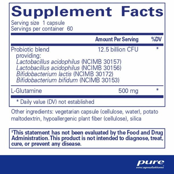4-strain, clinically-researched proprietary probiotic blend combined with l-glutamine for G.I. comfort and health