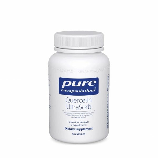 Quercetin UltraSorb contains the patented QuerceFit® quercetin-phospholipid complex forenhanced absorption and bioavailability. The proprietary phytosome technology combines quercetin from Sophora japonica flower extract and phospholipids from sunflower in a 1:1 ratio, promoting resistance to degradation in the digestive tract and efficient absorption across membranes. A randomized crossover human pharmacokinetic study compared QuerceFit® with regular quercetin and found the phytosome improved the bioavailability of quercetin by 20-fold. Quercetin is a polyphenolic flavonoid known to exhibit cellular and immune-moderating activity. Research suggests that quercetin acts as a SIRT1 inducer to promote cellular regulation and autophagy, the natural process of degradation and recycling of cellular components to promote renewal. It also increases the body's antioxidant capacity in part by regulating levels of glutathione. In a pilot trial involving adults, supplementation for 30 days with 250 mg or 500 mg QuerceFit® quercetin phytosome supported antioxidant defenses and helped support respiratory function and nasal comfort.6 Preliminary research suggests that quercetin helps to stabilize mast cells and moderate the release of immune mediators.