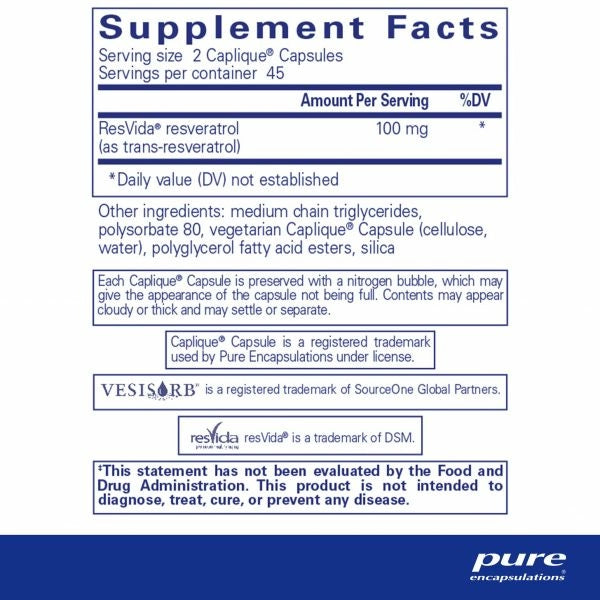 Research suggests resveratrol offers support for cellular function, cardiovascular and neurocognitive health, metabolic function and antioxidant defenses. In a 30-day, randomized double-blind crossover trial, 150 mg resVida® resveratrol supported a variety of cardiometabolic health markers. Resveratrol promoted AMPK activity and SIRT1 and PGC-1a protein levels, biomarkers that positively correlate with metabolic health and mitochondrial function. Resveratrol also promoted healthy blood flow, adipose tissue lipolysis and hepatic lipid content. In a dissolution study, resveratrol with the VESIsorb® delivery system demonstrated 100% dissolution, the ability to dissolve readily in an aqueous environment for absorption, compared to less than 1% for powder.