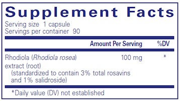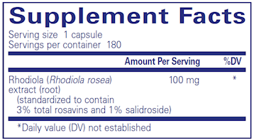 - Rhodiola rosea is derived from the root and standardized to contain 3% total rosavins and 1% salidroside