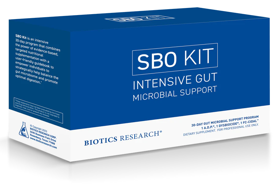 SBO Kit is an intensive 30-day program that combines the power of evidence-based, targeted nutritional supplementation with a user-friendly guidebook to empower individuals to strategically help balance the gut microbiome and promote optimal digestion.*