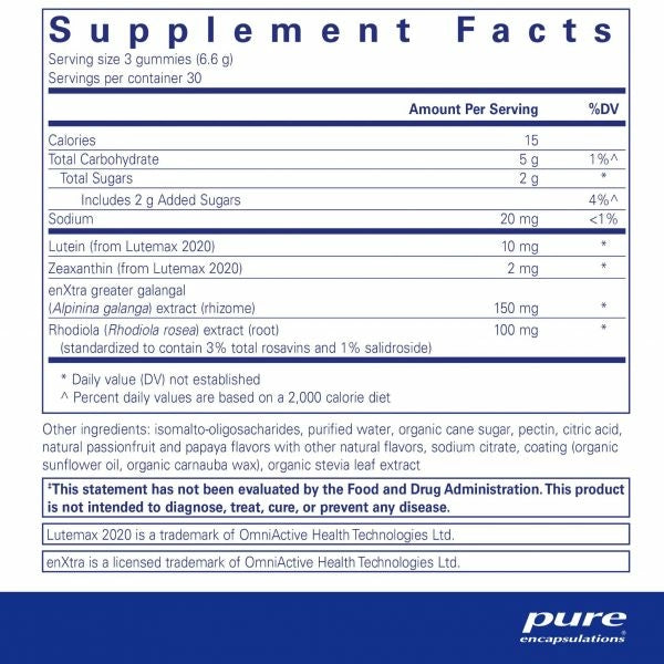 - Includes 10 mg lutein and 2 mg RR-zeaxanthin and RS (meso)-zeaxanthin as the clinically-researched marigold-derived Lutemax® 2020