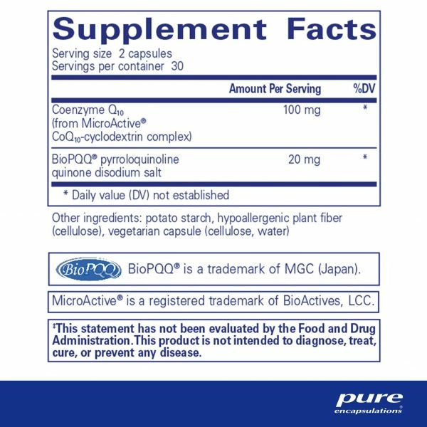 - Offers clinically researched BioPQQ® and sustained release MicroActive® CoQ10