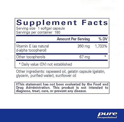 Vitamin E is a powerful chain-breaking antioxidant and free radical scavenger, helping to protect the integrity of the body's cellular membranes. Vitamin E plays a beneficial role in the cellular respiration of muscles, especially cardiac and skeletal muscles. It also supports healthy blood vessel function. In addition, vitamin E plays a role in nucleic acid and protein metabolism, mitochondrial function, and hormone production.